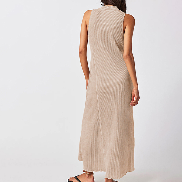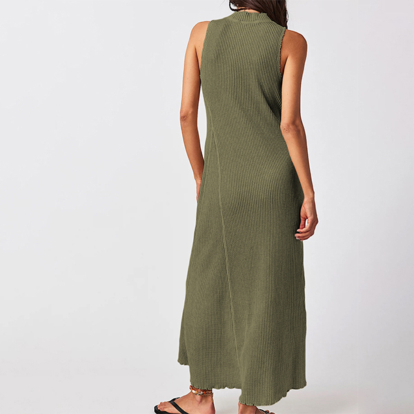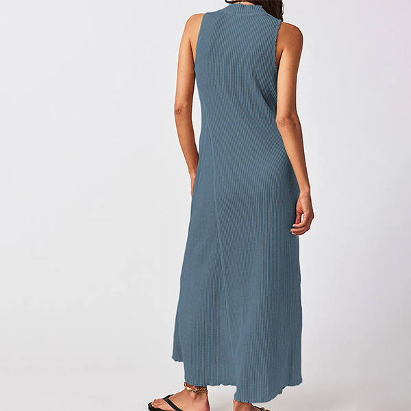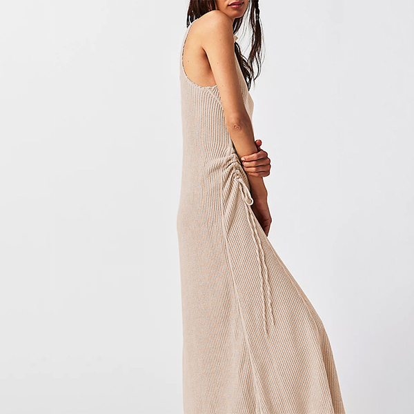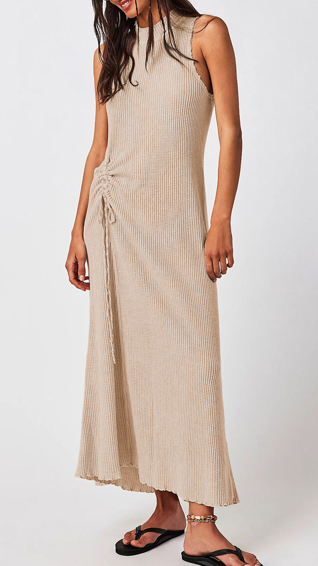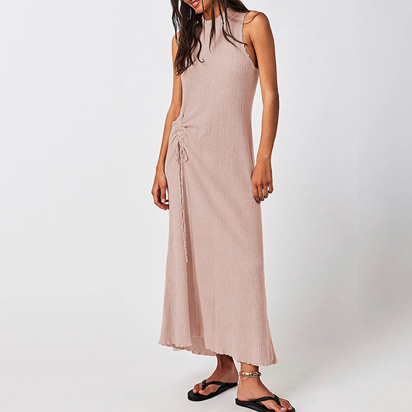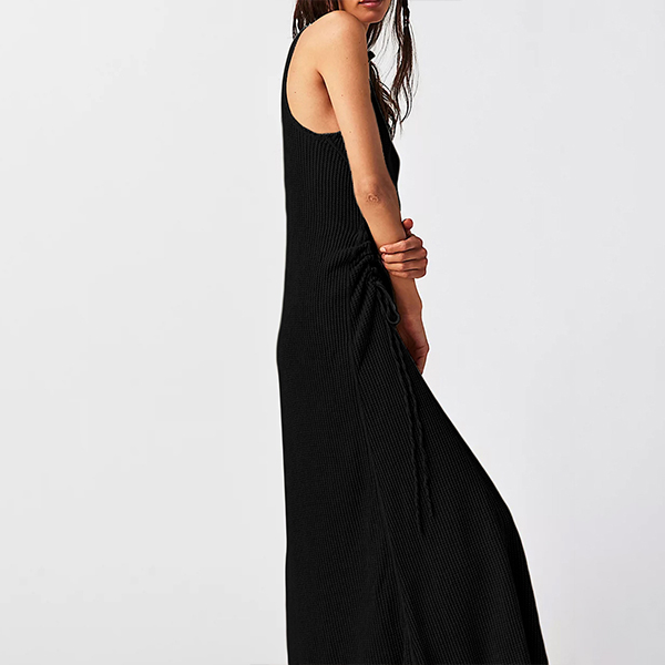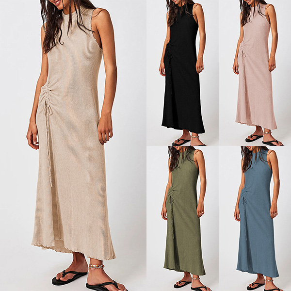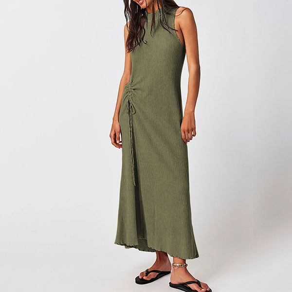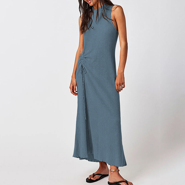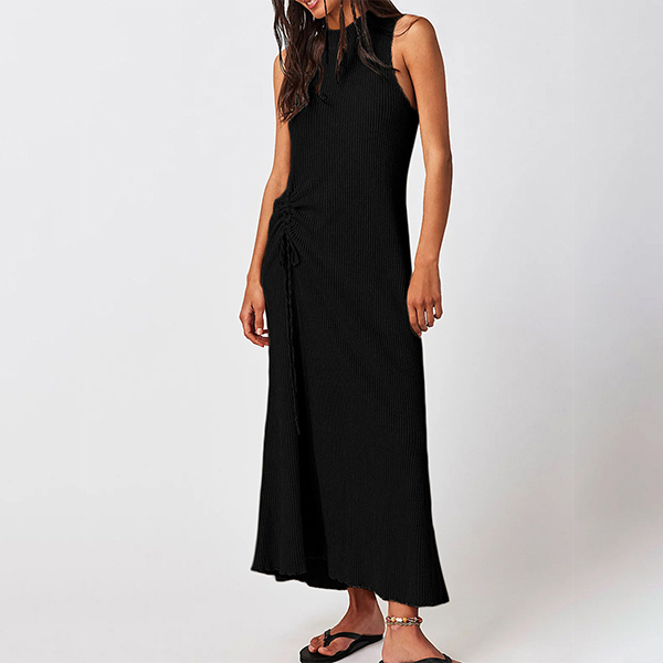 Casual Round Neck Sleeveless Side Drawstring Maxi Dress