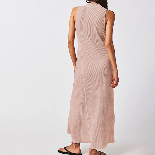 This maxi dress features a round neckline, sleeveless design, and side drawstring detailing for a laid-back and versatile look. Multi-colors avabile.