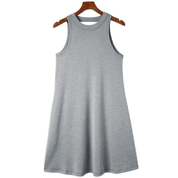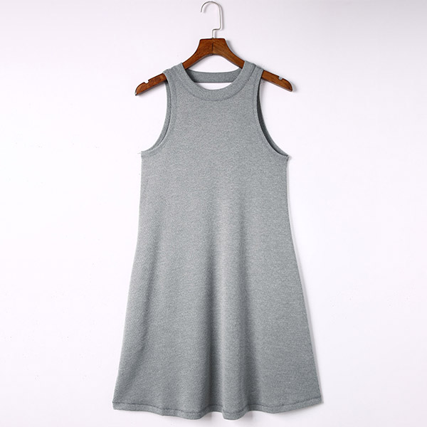 Crafted from comfortable and breathable materials, this mini dress ensures a relaxed fit and all-day comfort. It features a round neckline, sleeveless design, convenient side pockets, and a stylish backless detail, creating a comfortable and fashionable ensemble.