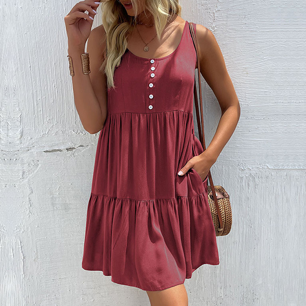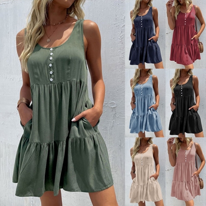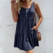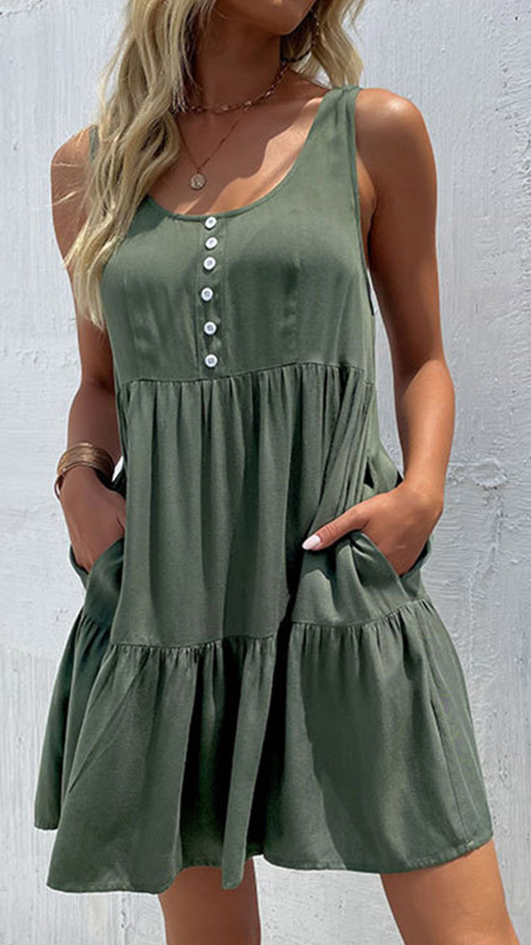 Casual Round Neck Sleeveless Side Pockets Mini Dress