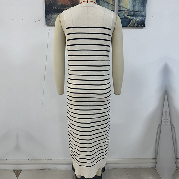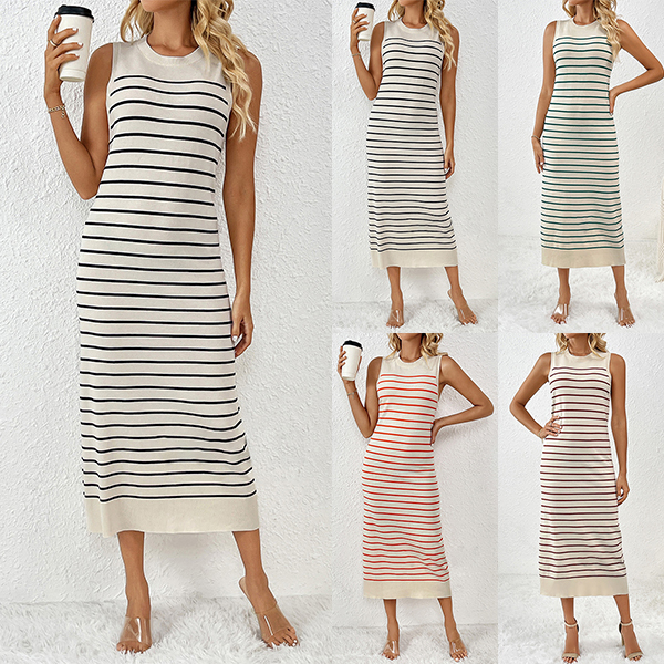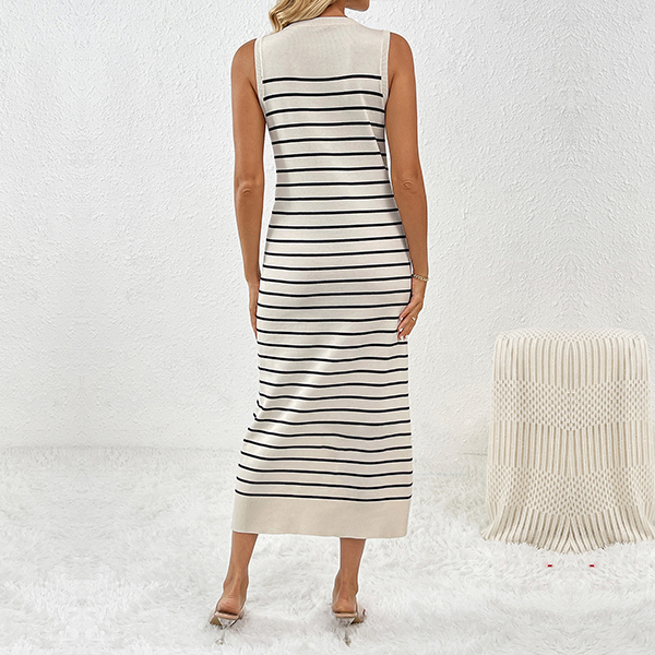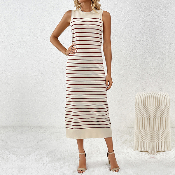 Casual Round Neck Sleeveless Stripe Pattern Knitted Bodycon Dress