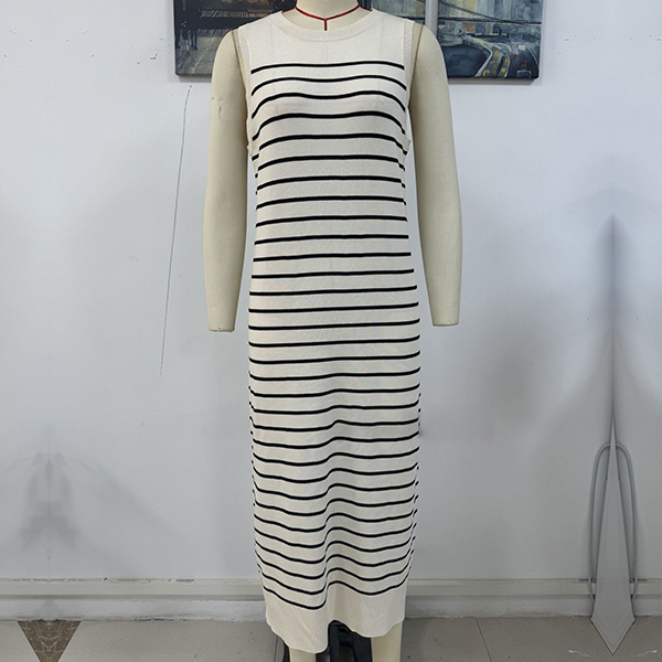 This dress features a round neckline, offering a timeless and versatile look. The stripe pattern on this dress adds a touch of visual interest and modernity. Wanna have a try?