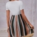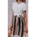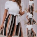 This fun and flirty dress is perfect for a casual day out! White short sleeve bodice, and vertical stripes are slimming and elongating your figure, while the self-tie waist cinches in your waist for a flattering fit. The flared skirt is fun and flirty.