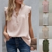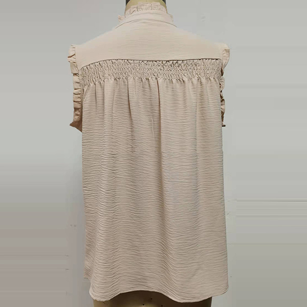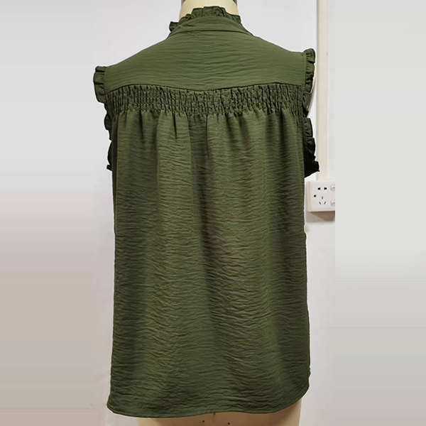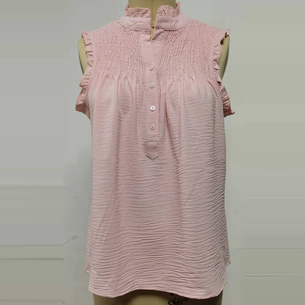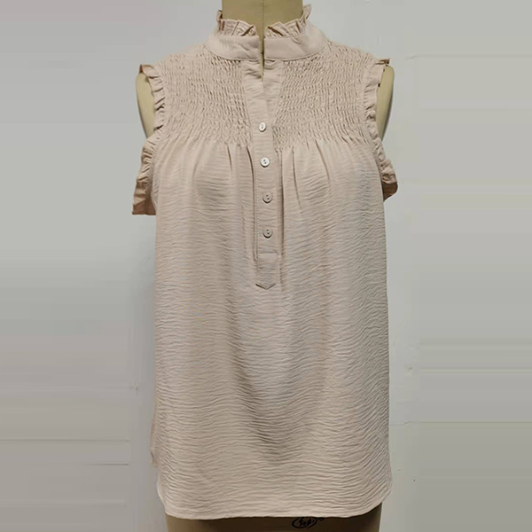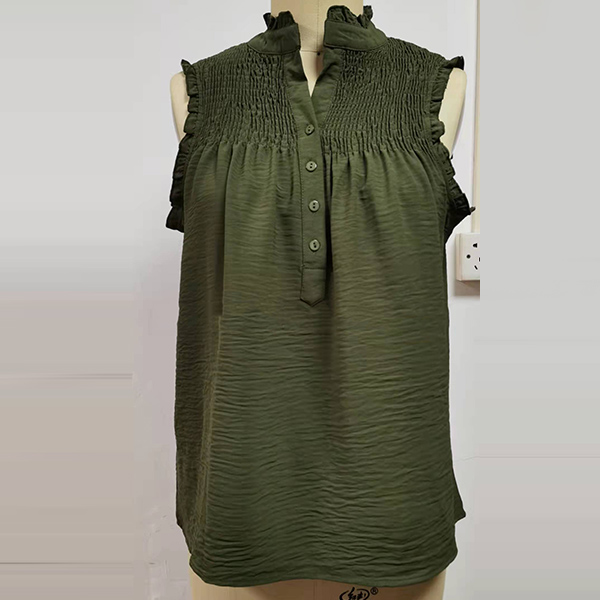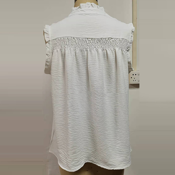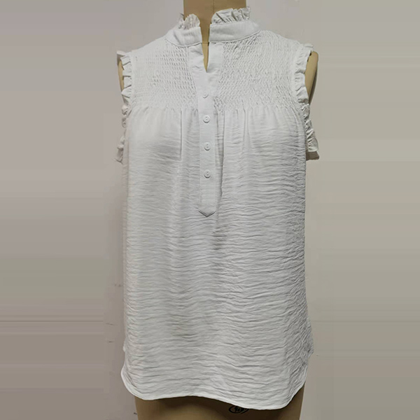 Casual Ruched Ruffle Buttoned Sleeveless Shirt