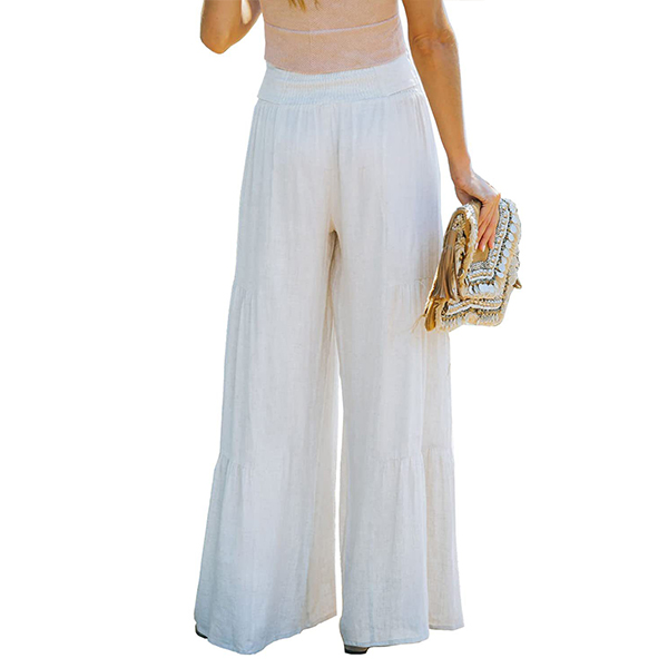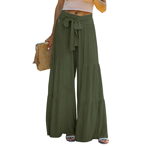 These pants are perfect for a casual day out! They feature a ruched detail and a self-tie waist. The wide-leg silhouette is perfect for a relaxed and comfortable fit.