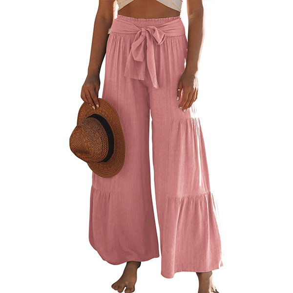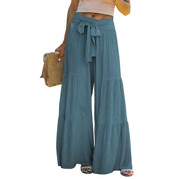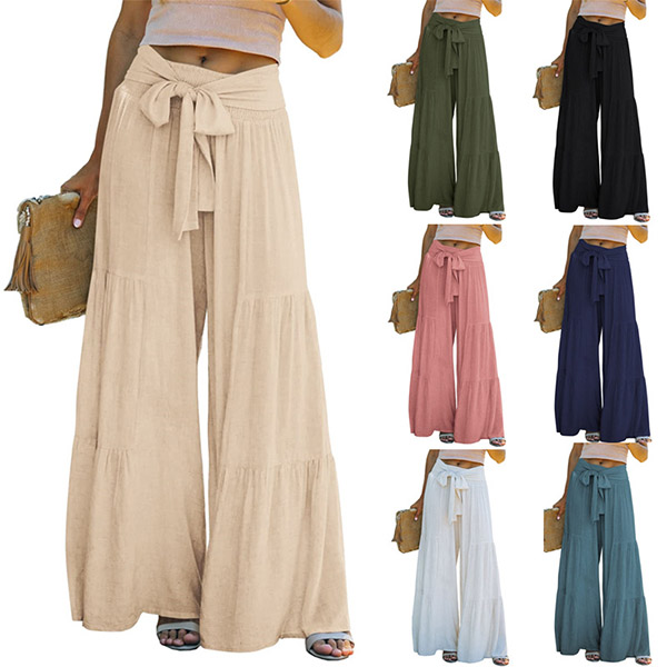 Casual Ruched Self-tie Wide-leg Pants
