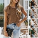 Casual Ruffled Short Sleeve Round Neck Ribbed Shirt