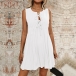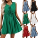 Casual Self-tie Crew Neck Sleeveless Pleated Dress