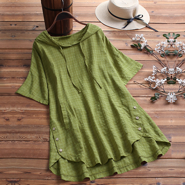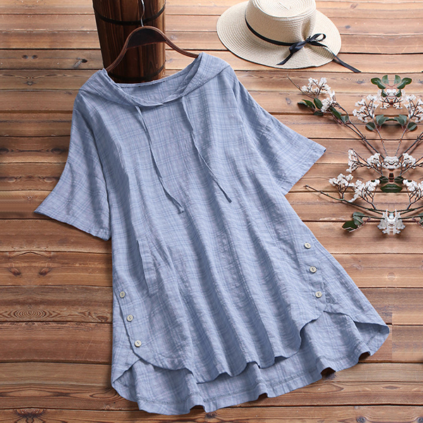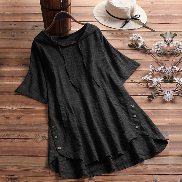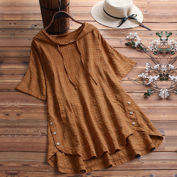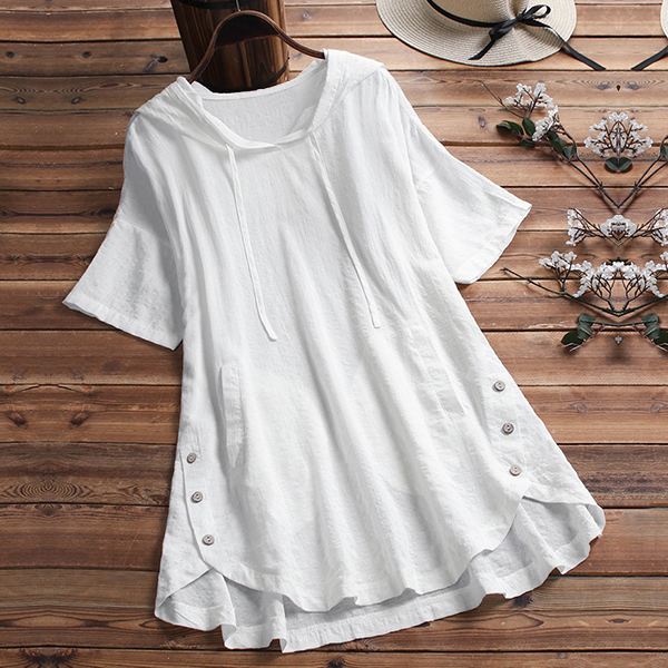 This casual hooded shirt features short sleeves and a drawstring detail, creating a relaxed and laid-back look. Pair it with your favorite jeans or shorts for a relaxed and easygoing ensemble.