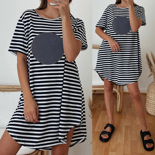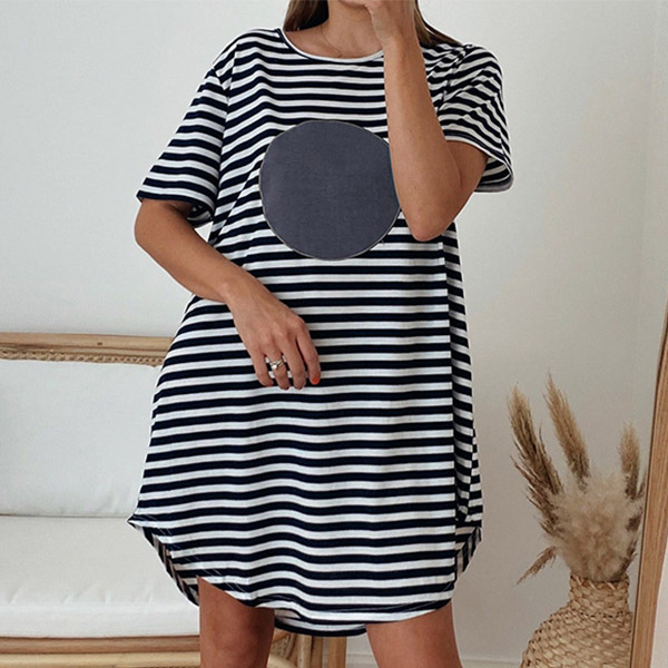 Casual Short Sleeve Round Neck Stripe Heart Pattern Loose Dress