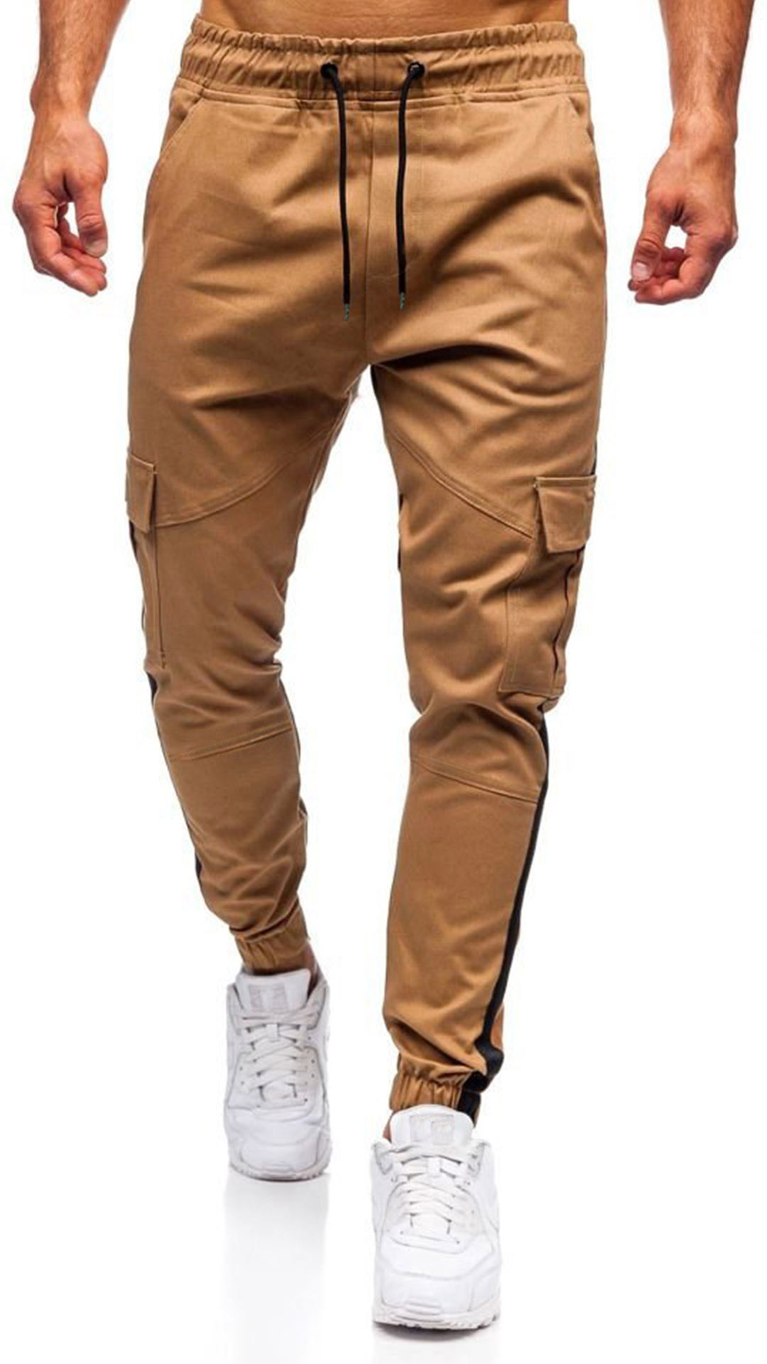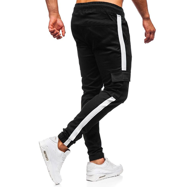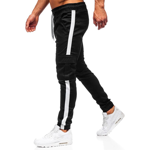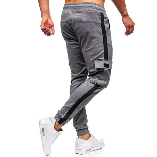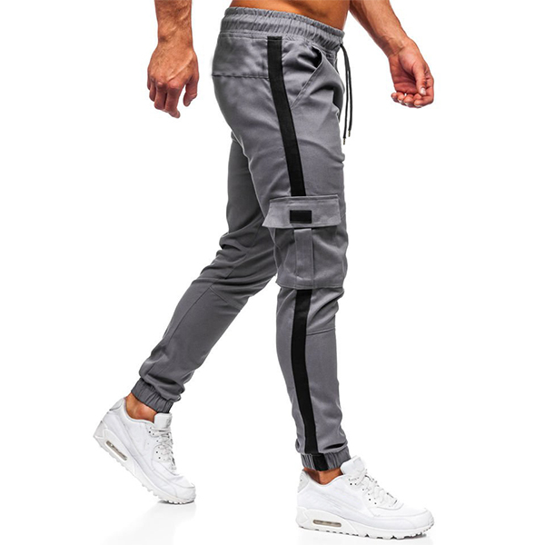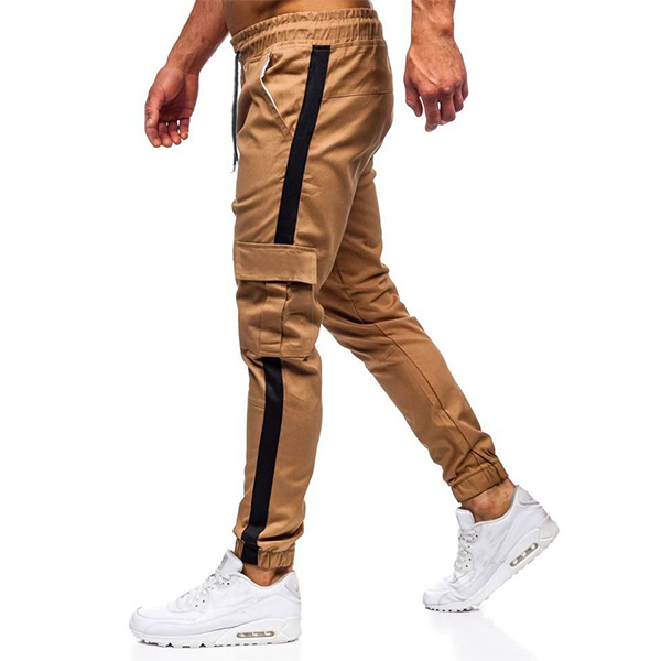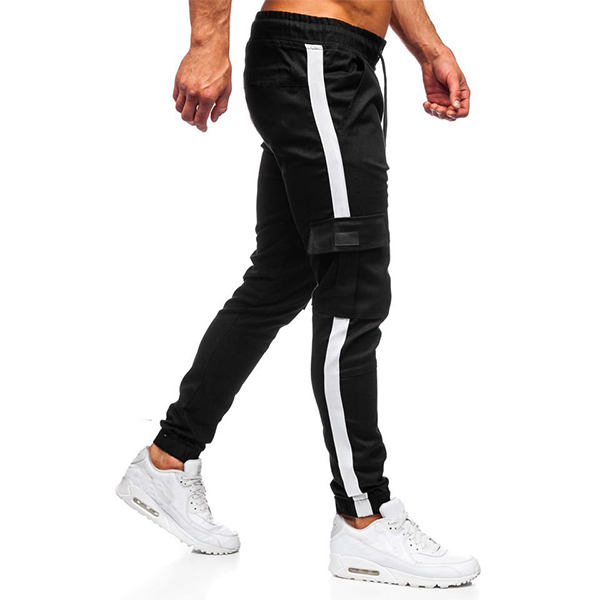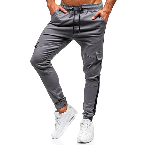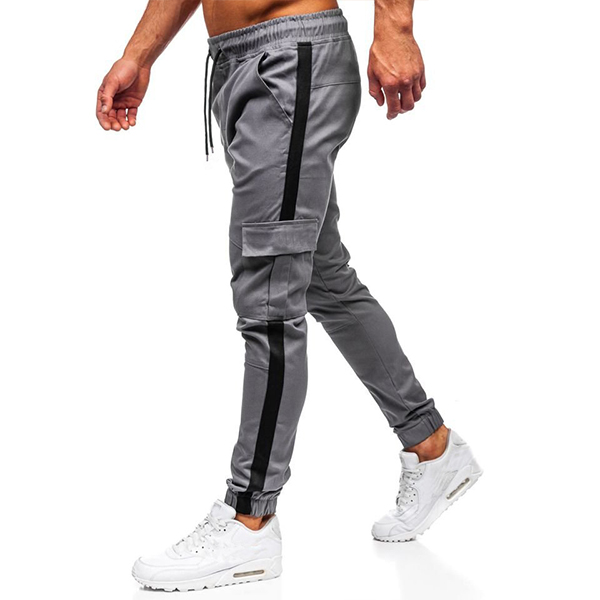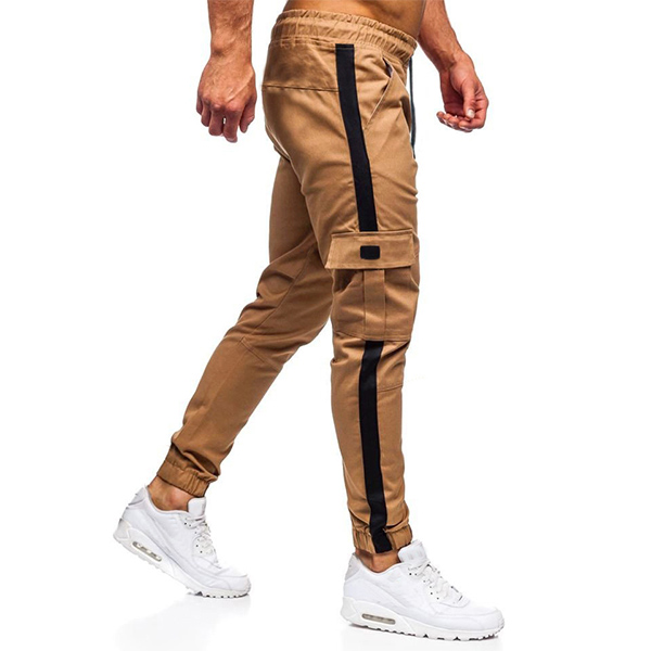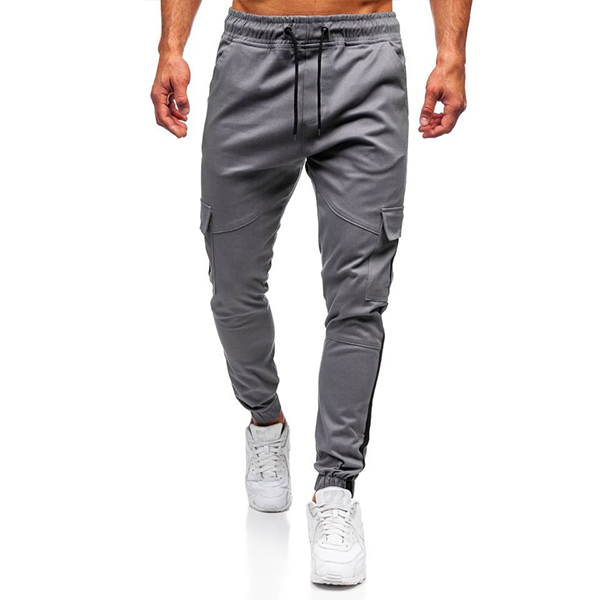 Casual Side Patch Pockets Drawstring Elastic Pants for Men