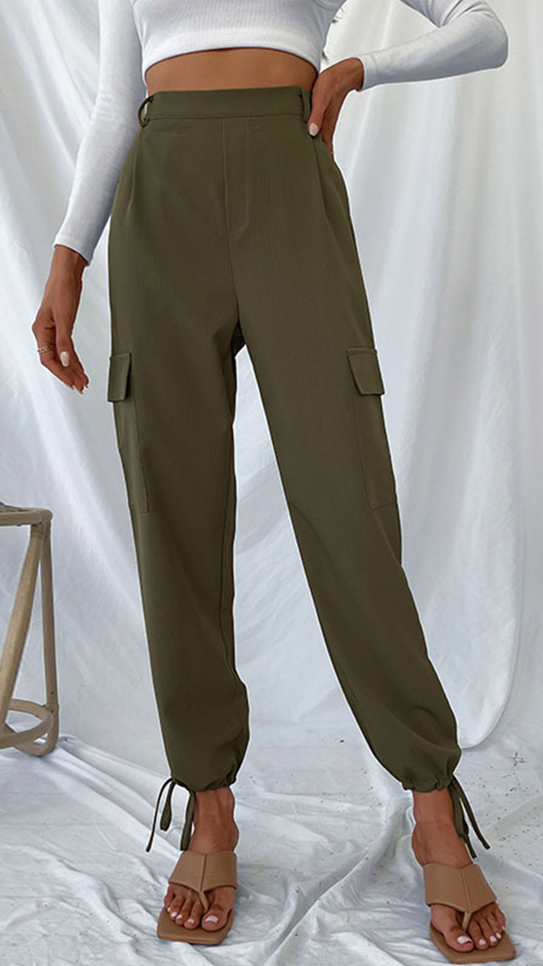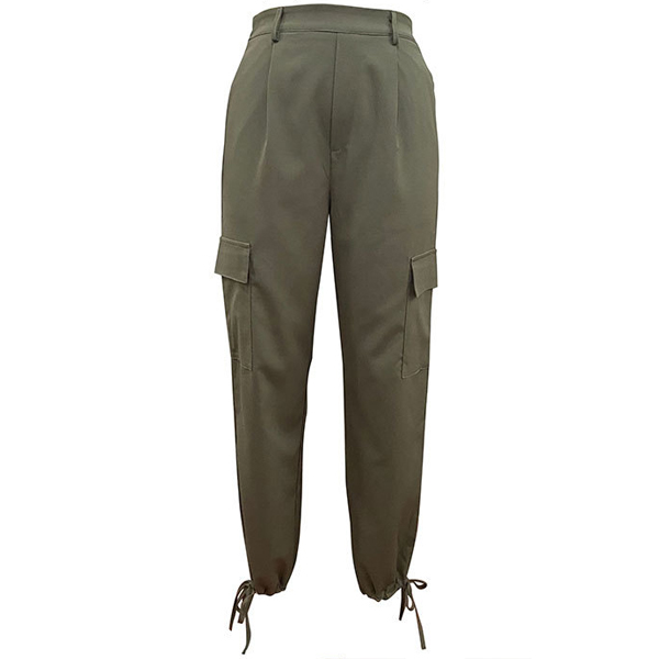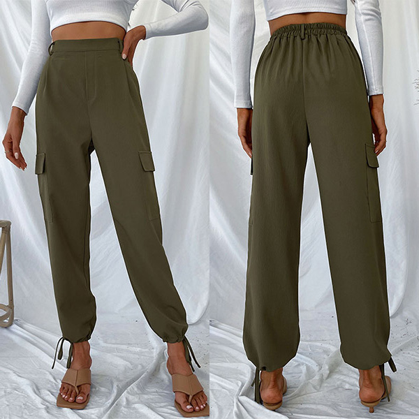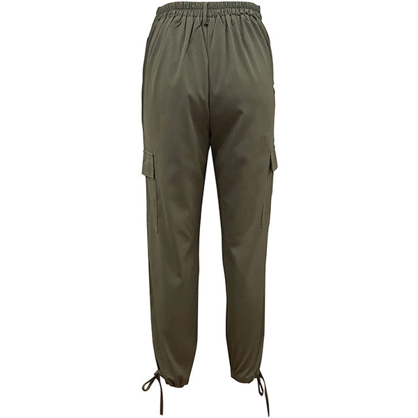 Casual Side Patch Pockets Elastic Waist Cargo Pants for Women
