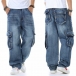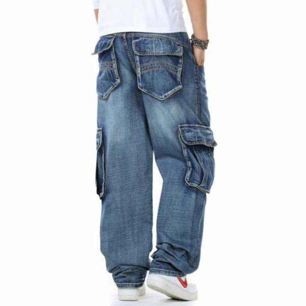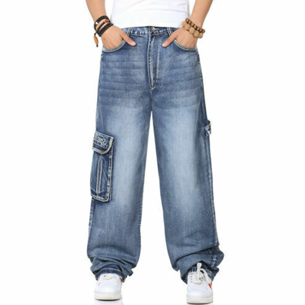 Casual Side Patch Pockets Loose Denim Jeans for Men