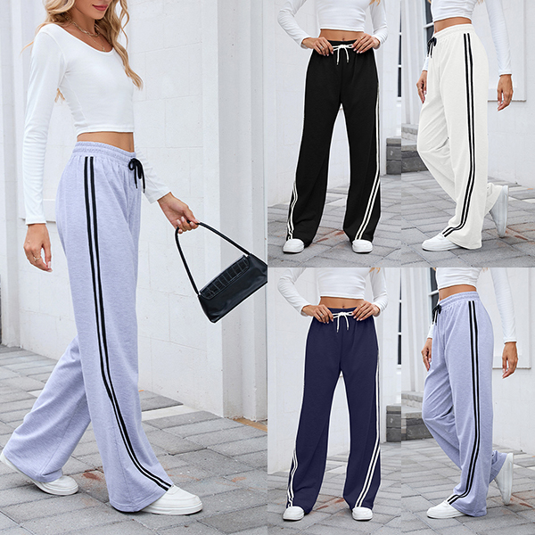 These relaxed sweatpants bring athletic-inspired style with comfortable everyday appeal. The side stripe printed detailing adds sporty visual interest and dynamic lines that enhance the leg silhouette. The drawstring waist offers customizable fit and relaxed styling, ensuring comfortable wear throughout the day. The loose fit provides unrestricted movement and laid-back comfort perfect for casual wear and active pursuits. Wanna have a try?