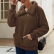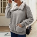 Casual Slant Zipper Stand Collar Long Sleeve Patch Pockets Plush Sweatshirt
