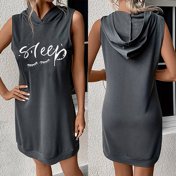 Casual SLEEP-Letter Printed Sleeveless Hooded Dress