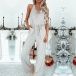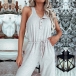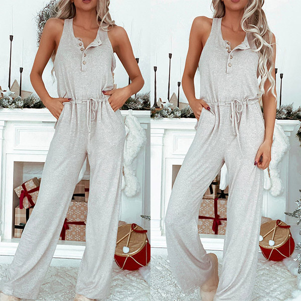 This is a casual and chic jumpsuit that design with a sleeveless silhouette, front buttons, and a drawstring waist for a fashionable and comfortable look.Pair it with sandals or flats for a relaxed and effortless look.
