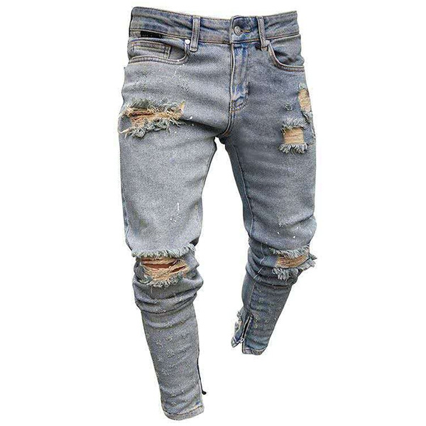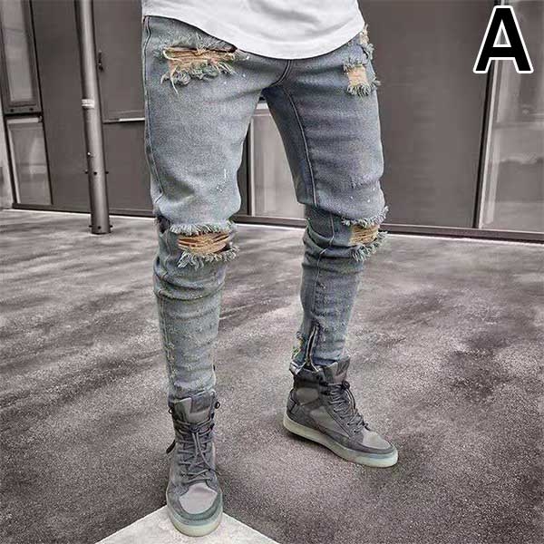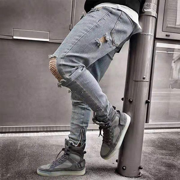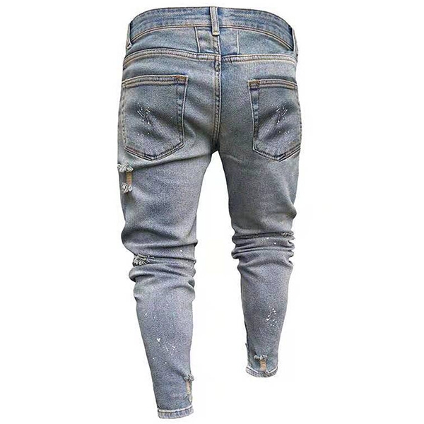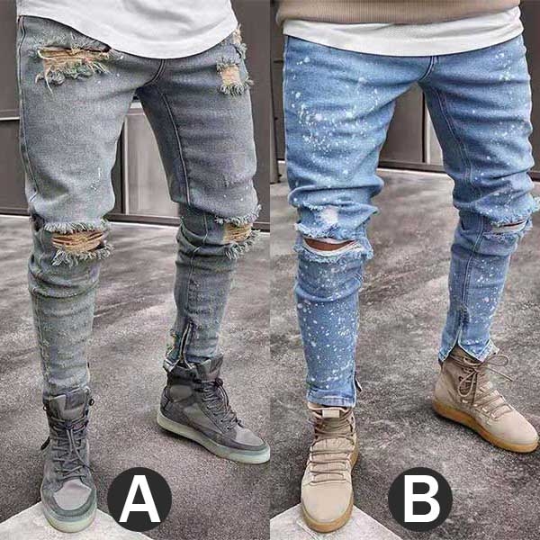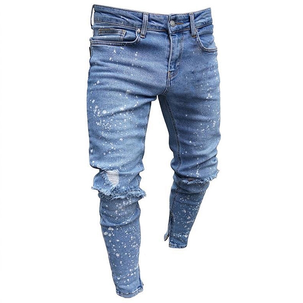 wearing experience.The jeans in soft and cozy material, with ripped and stain pattern design,