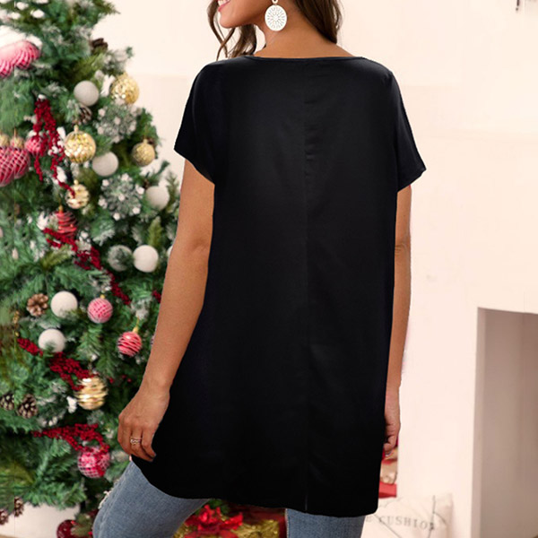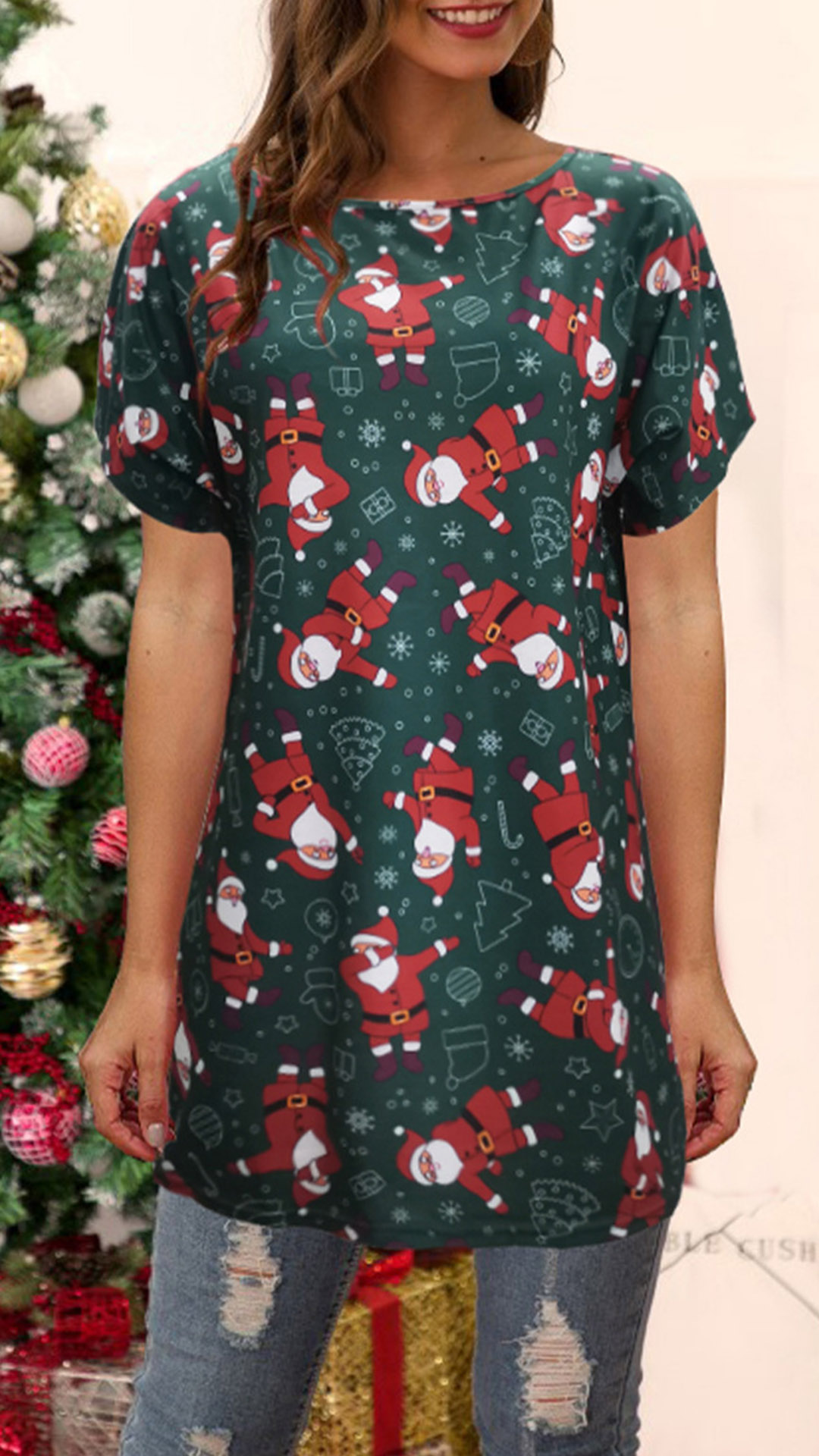 Casual Snowman Printed Round Neck Short Sleeve Shirt for Christmas