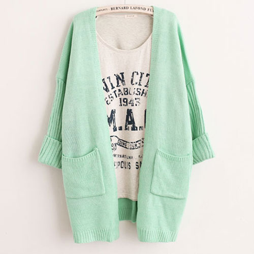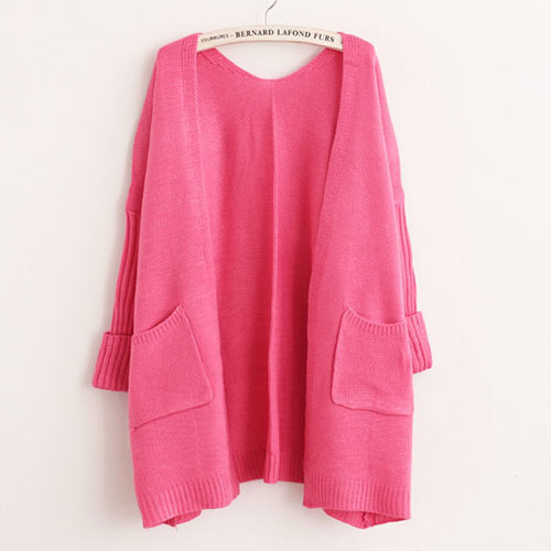 Casual Solid Candy Color Batwing Sleeve Loose Fit Knit Jacket Cardigan