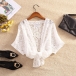 Casual Solid Color Batwing Sleeve Lace Cardigan