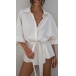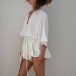 Casual Solid Color Batwing Sleeve Self-tie Romper