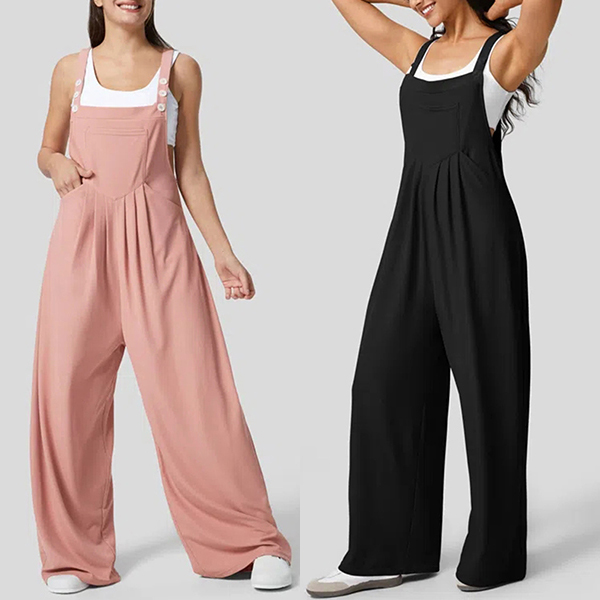 This suspender pants features a button detailing shoulder strap, solid color design, front patch pockets, and straight-cut pants for a stylish and casual look. Is it your style?