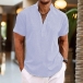 Casual Solid Color Button V-neck Short Sleeve Shirt for Men