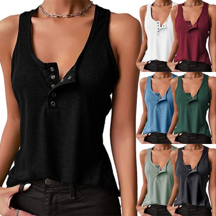 This casual tank top features the button V-neck design. Solid color, sleeveless, simple but chic. Team with shorts for a casual and stylish summer look.