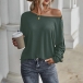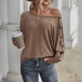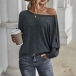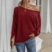 Casual Solid Color Buttoned Long Sleeve One-shoulder Shirt