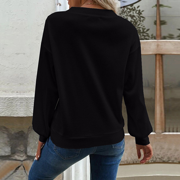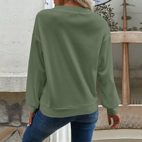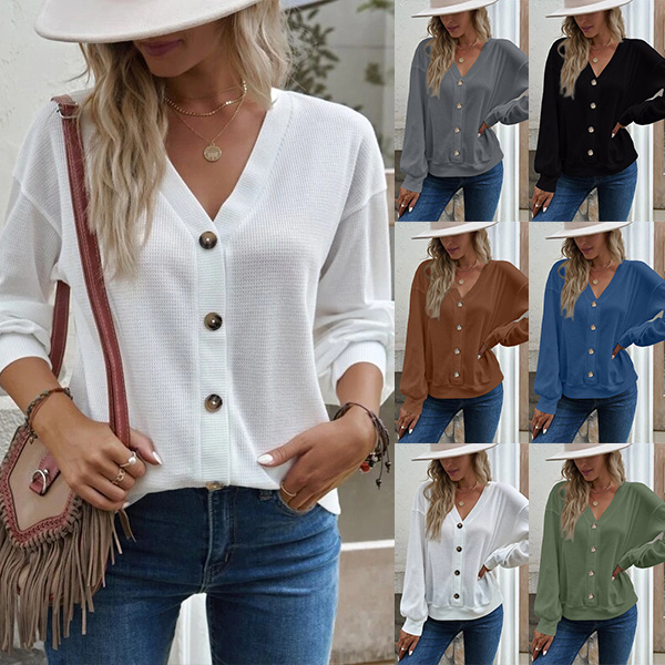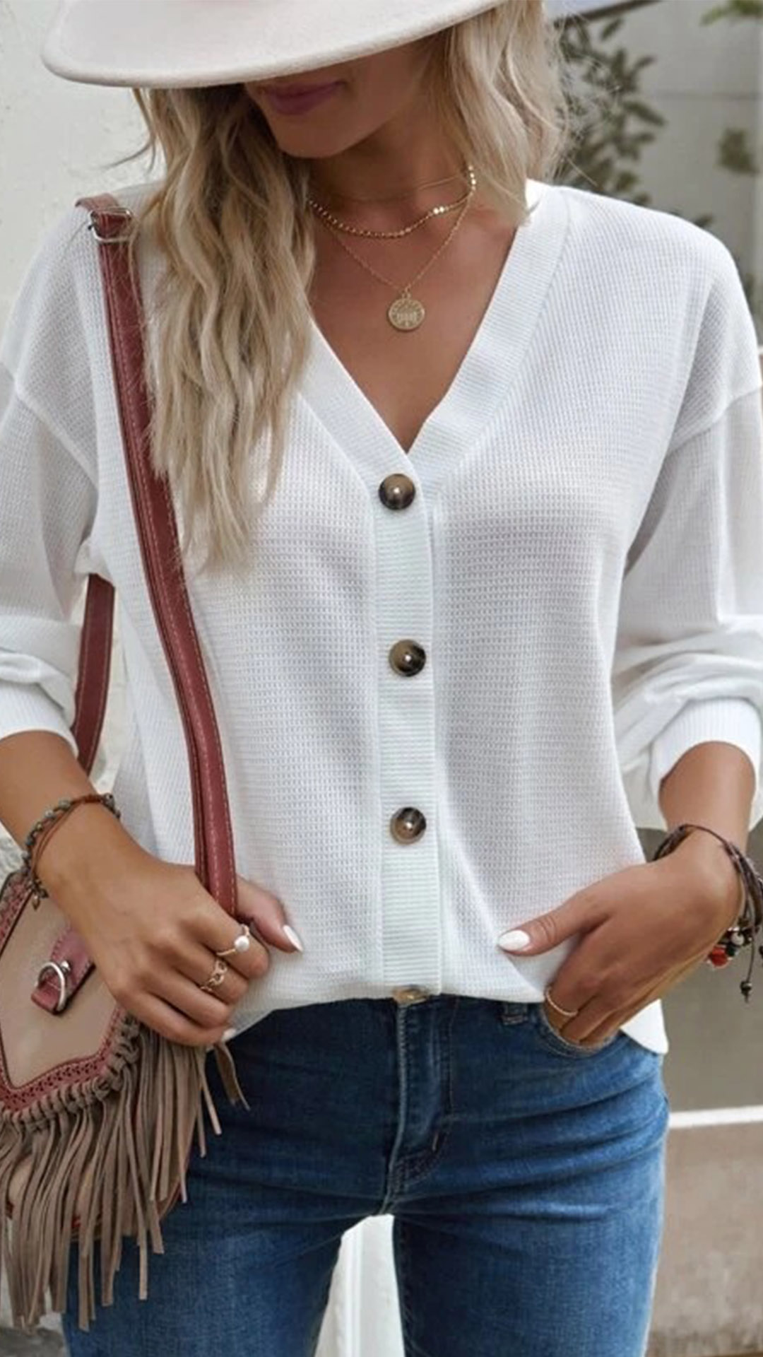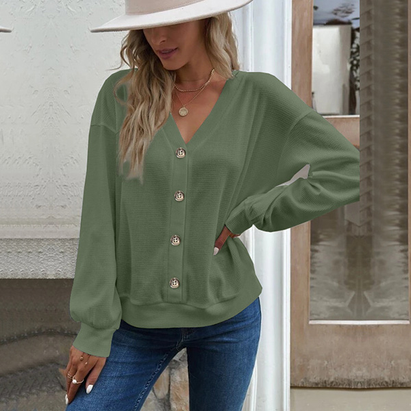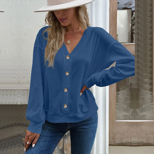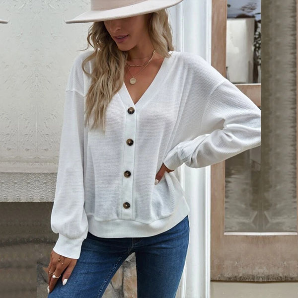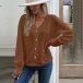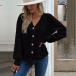 Casual Solid Color Buttoned V-neck Long Sleeve Knitted Shirt