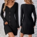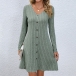 Look at this dress! The solid color design adds a timeless and classic touch to the dress, making it easy to style for any occasion. The front buttoned and V-neckline adds a subtle and chic detail, hope you like it.