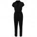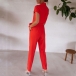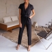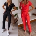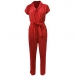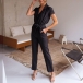 Solid color features a solid color, buttoned V-neck, and self-tie waist. The jumpsuit is made of a lightweight fabric, making it perfect for warm weather.