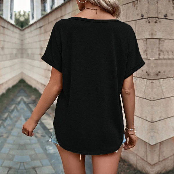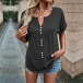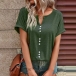 Casual Solid Color Buttoned V-neck Short Sleeve Shirt