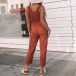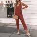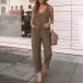 This is a stylish and comfortable jumpsuit for women. It features a solid color design with a V-neckline and sleeveless cut, creating a chic and sophisticated look. The jumpsuit also includes button closures and patch pockets, adding a touch of practicality and style to the piece. Wanna have a try?