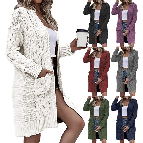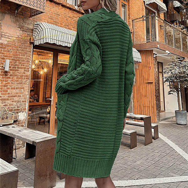 Casual Solid Color Cable Knitting Long Sleeve Knitting Cardigan