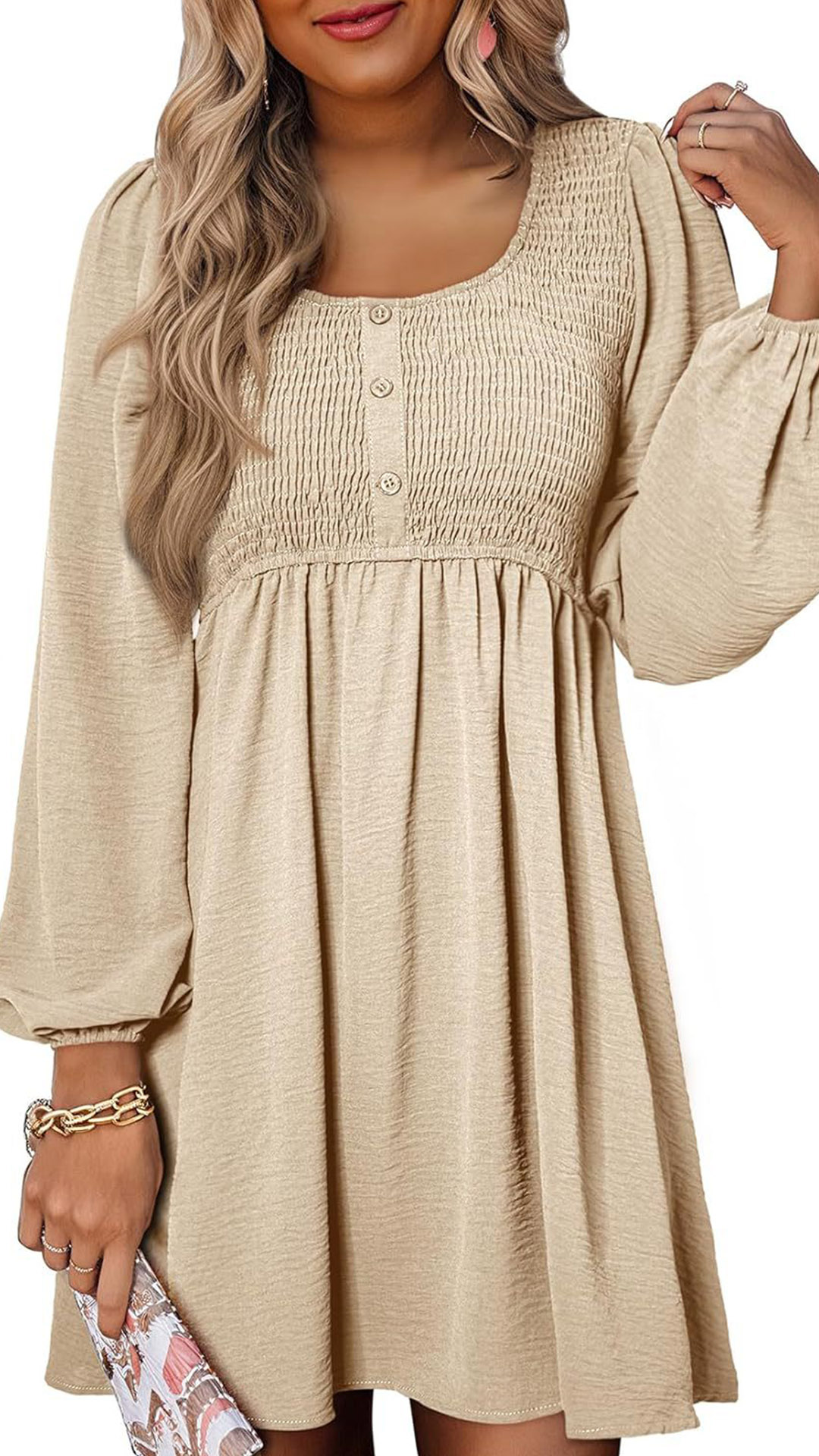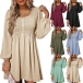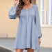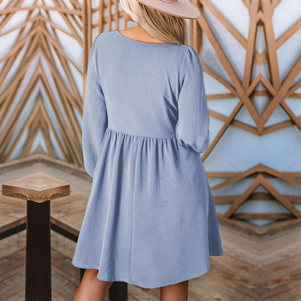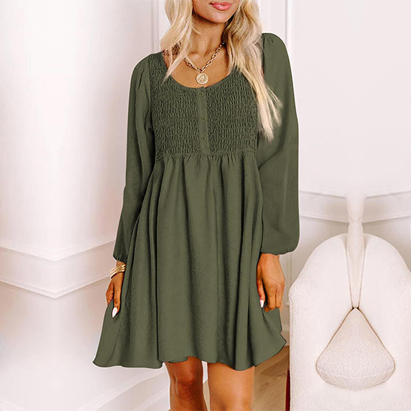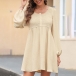 Casual Solid Color Crew Neck Long Sleeve High-rise Mini Dress