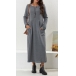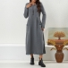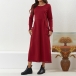 Casual Solid Color Crew Neck Long Sleeve Patch Pockets Dress
