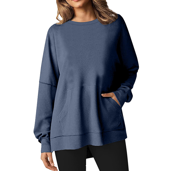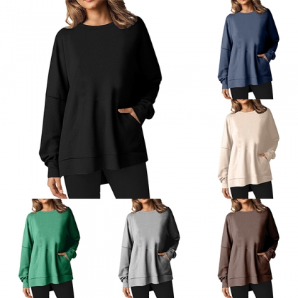 Casual Solid Color Crew Neck Long Sleeve Side Pockets Sweatshirt
