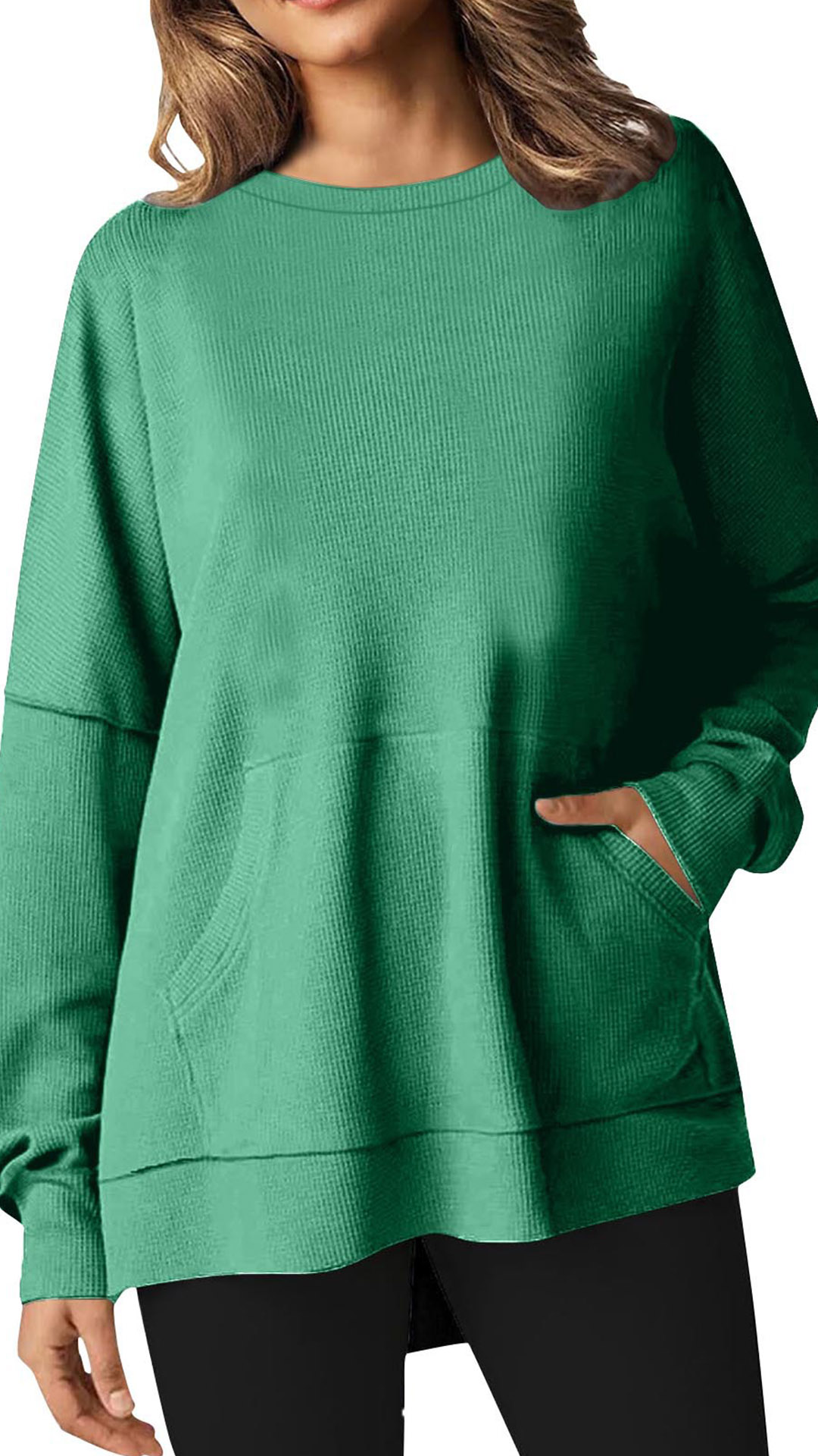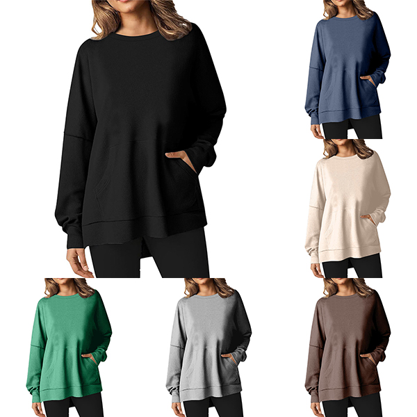 This casual sweatshirt combines comfort and style with its solid color design and relaxed crew neck. Perfect for lounging, running errands, or layering on chilly days, this sweatshirt pairs effortlessly with jeans, leggings, or joggers for a laid-back, everyday look.