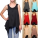 Casual Solid Color Crew Neck Sleeveless Irregular Hemline Shirt