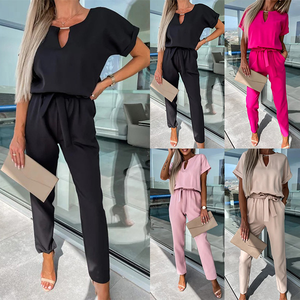 This jumpsuit features a flattering front cutout design that adds a touch of sexiness and sophistication. The self-tie waistband cinches in at the waist to create a flattering silhouette, while the solid color adds a touch of elegance and versatility. Wanna have a try?
