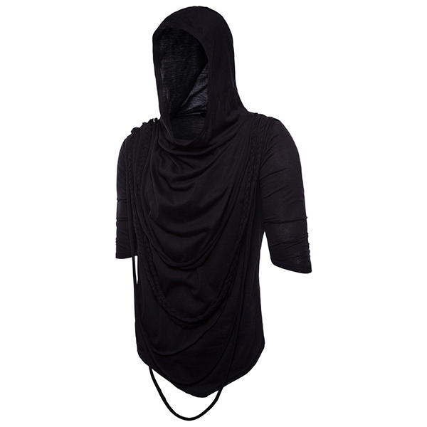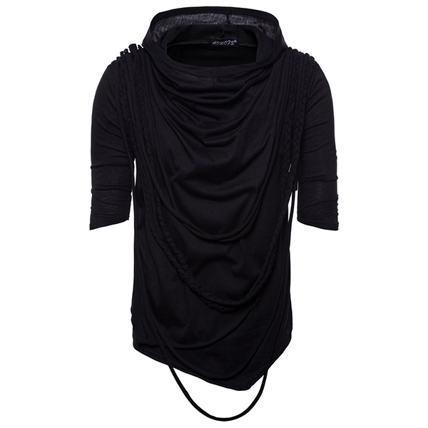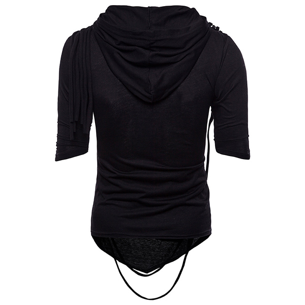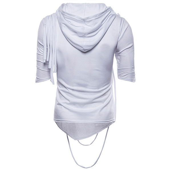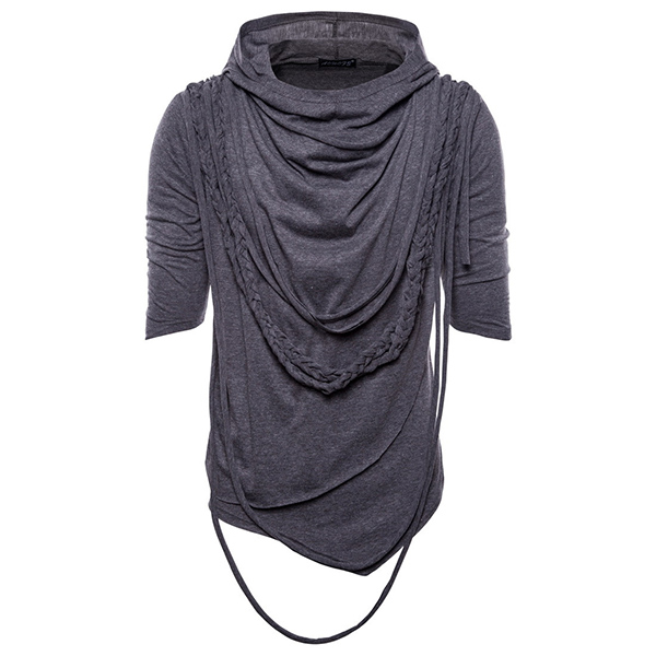 Casual Solid Color Draped Elbow Sleeve Hoodie Shirt for Men