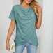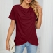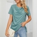 Casual Solid Color Draped Neck Short Sleeve Slit Shirt