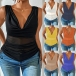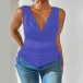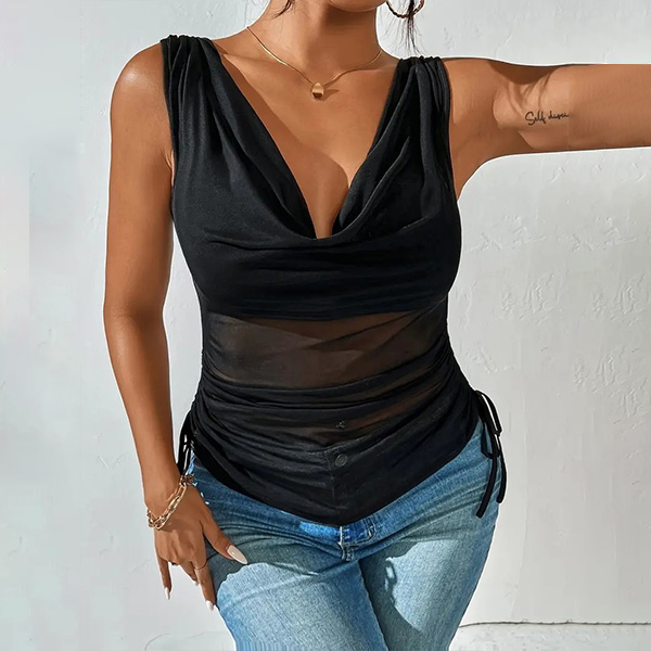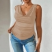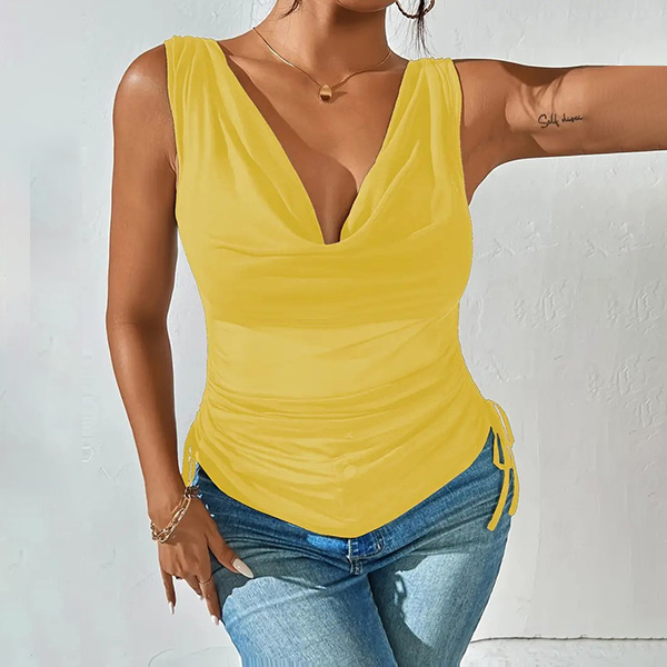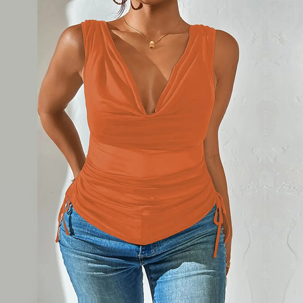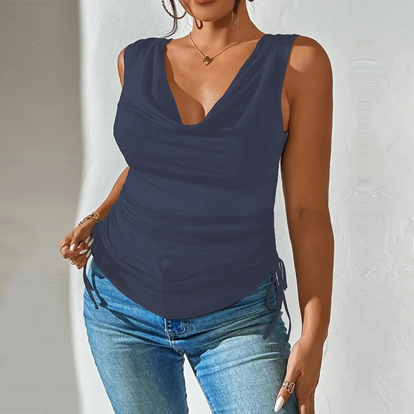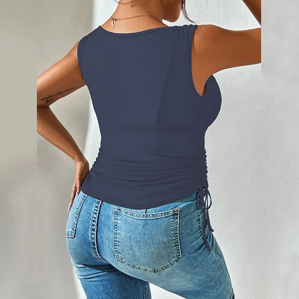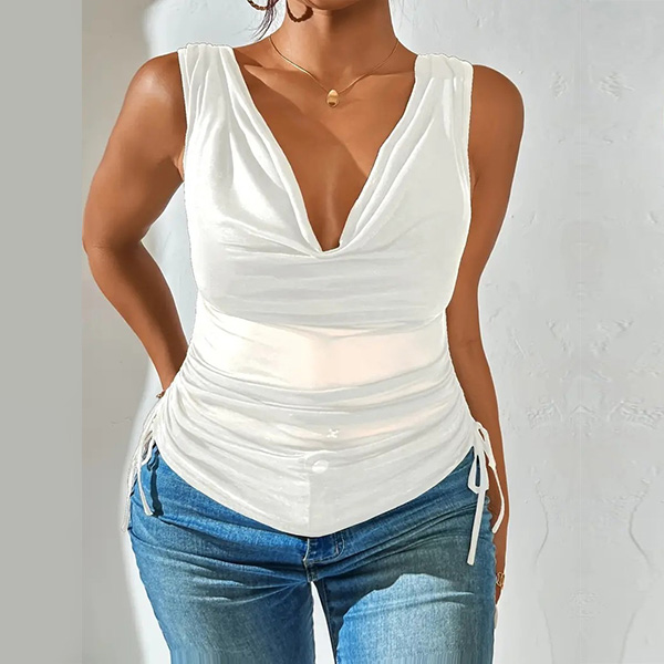 Casual Solid Color Draped V-neck Sleeveless Side Drawstring Shirt