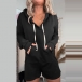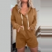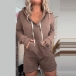 Casual Solid Color Drawstring Hooded Long Sleeve Kangaroo Pockets Romper
