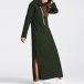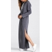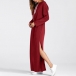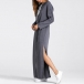 Casual Solid Color Drawstring Hooded Long Sleeve Slit Maxi Dress