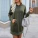 Casual Solid Color Drawstring Hooded Long Sleeve Sweatshirt Dress