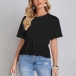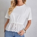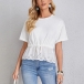 Casual Solid COlor Drawstring Lace Splcied Short Sleeve Round Neck Shirt
