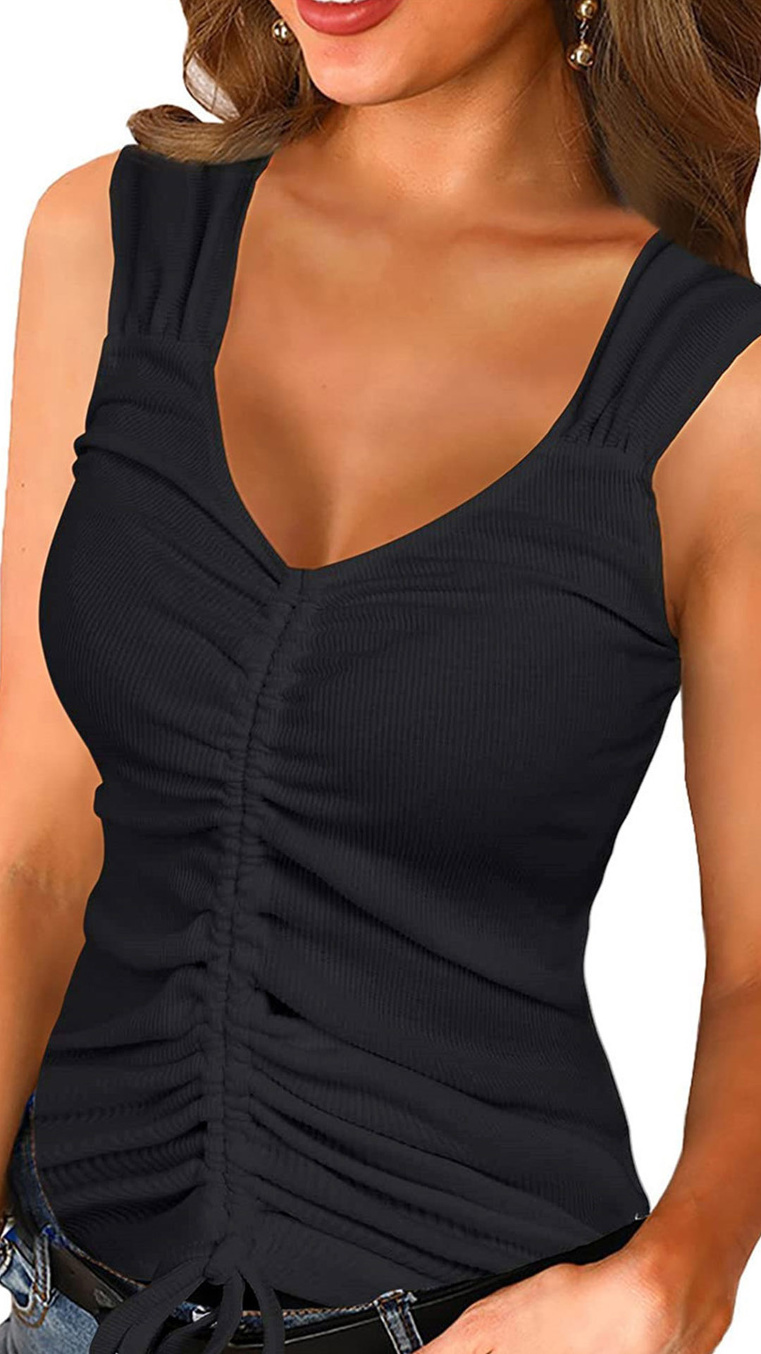 Casual Solid Color Drawstring Ruched Sleeveless Shirt